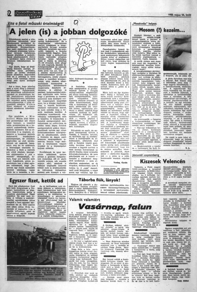 Vastag, Gyula, „A jelen (is) a jobban dolgozóké.” (The Present Should Also Belong to the Better Performers). Article in the Discussion ‘The Future Belongs to the Younger Generation,’ Dunaújvárosi Hírlap, May 18, 1982, p.2, in Hungarian.